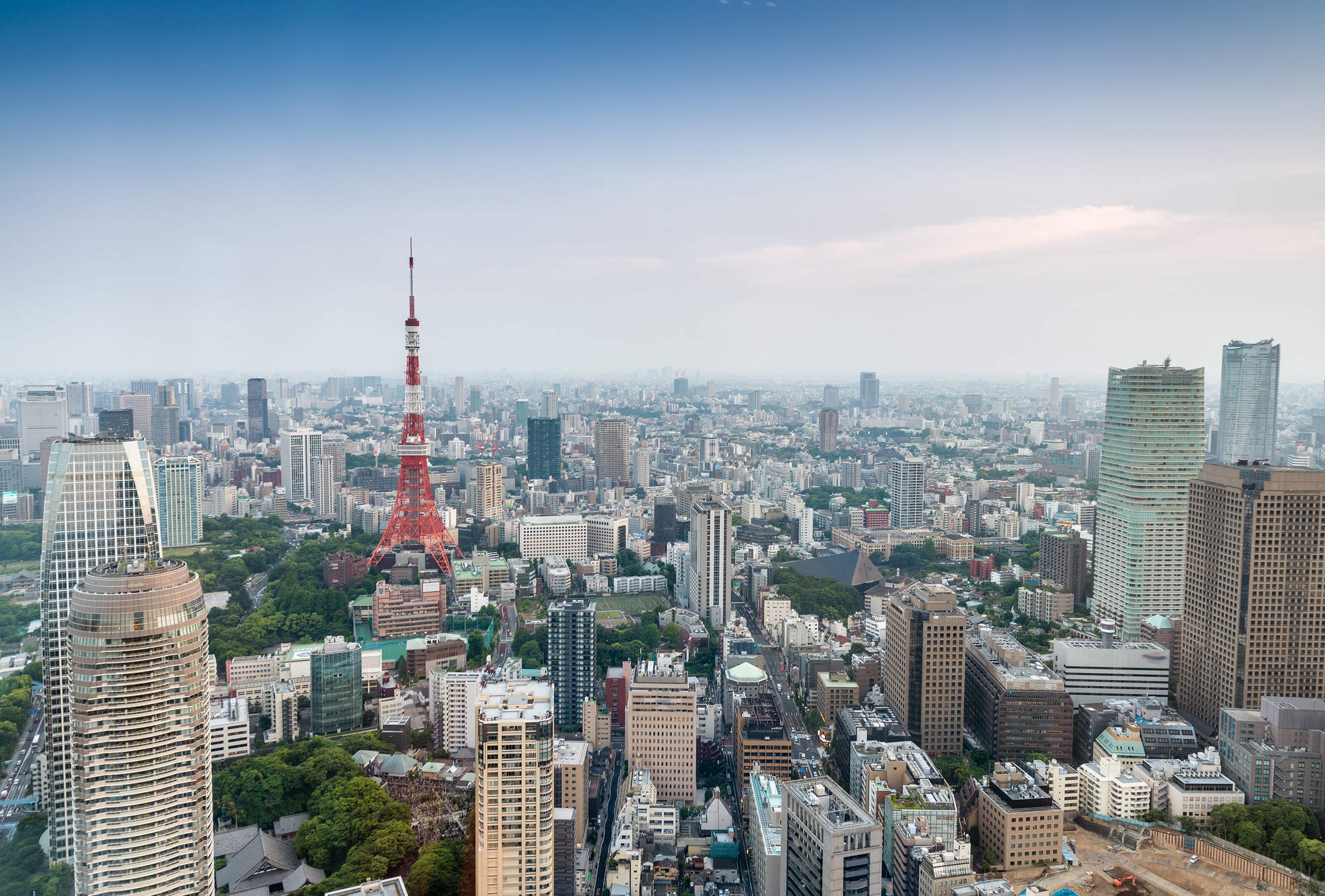 Tokyo skyscrapers and Tokyo Tower aerial view